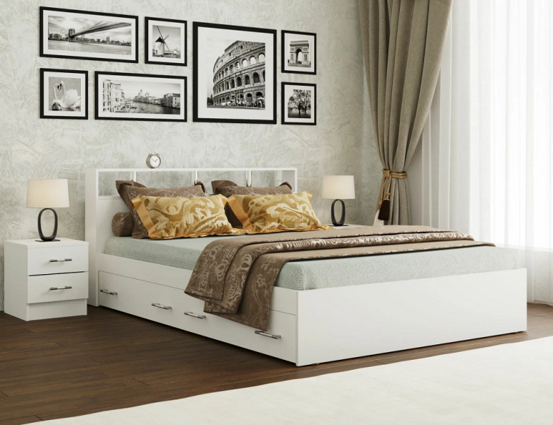 Современная кровать Арина обладает не только стильным дизайном, но и высоким качеством. Основание кровати - ламели из натуральных материалов, что обеспечивает оптимальную поддержку и комфорт во время сна. Изголовье кровати завершает мебельная полка на хромированных трубках. Это добавляет кровати Арина особую изысканность и нотку элегантности. Кровать Арина изготовлена из высококачественной ЛДСП, что обеспечивает прочность и надежность конструкции. Такой материал является долговечным и устойчивым к повреждениям, что гарантирует долгую эксплуатацию кровати.