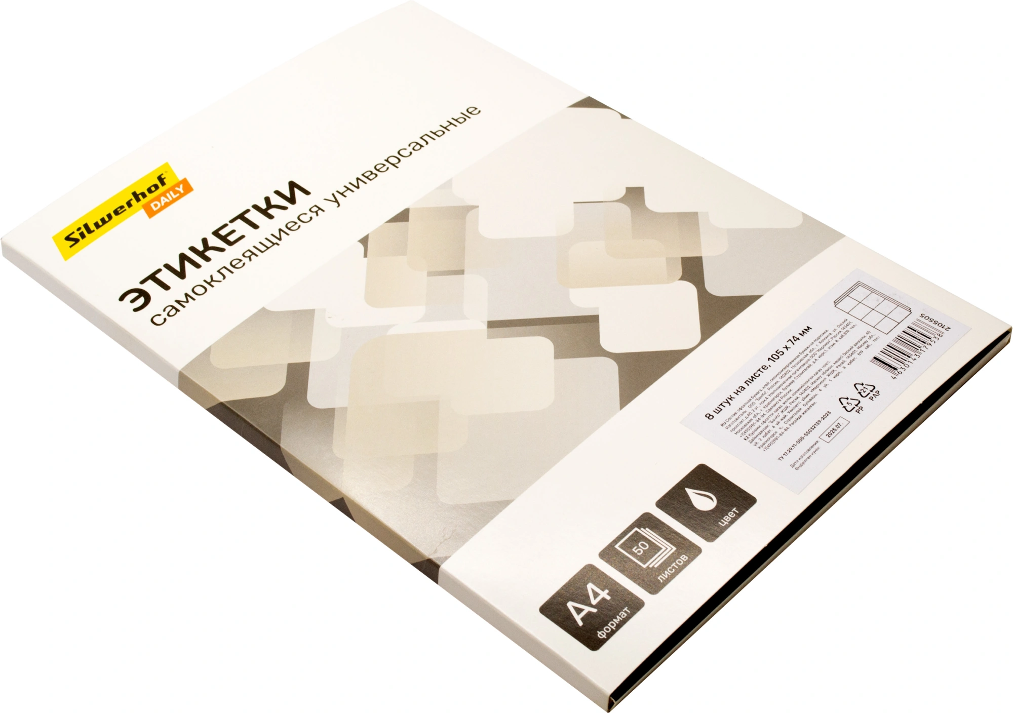 Этикетки Silwerhof A4 105x74мм 8шт на листе/50л./белый матовое самоклей. универсальная