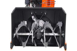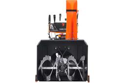 Уверенное передвижение и высокую маневренность снегоуборщика обеспечивают 6 передних и 2 задние передачи. Обновленная панель оператора с кнопками вместо рычагов позволяют легко настроить нужный режим работы. Стальной двухступенчатый шнек справится даже с плотным снежным покровом, облегчая обслуживание любой территории. Выброс осадков осуществляется на расстояние до 11 метров под углом 180 градусов.