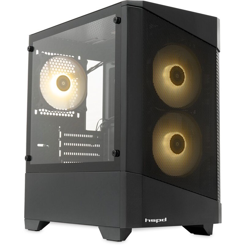 Корпус HSPD M330 (M330-TGBK-ARGB), без БП, Mesh Mini-tower, Black, TG, 0.6 SPCC, 3x120mm ARGB mATX, mITX 175/330/160mm 2x2.5", 4xPCI 1xUSB-A 3