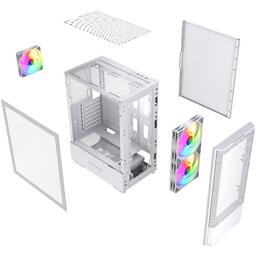 Корпус Powercase Mistral AY3W ARGB (CMAYW-A3), Tempered Glass, 2x 140mm +1x 120mm ARGB Fans, белый, ATX