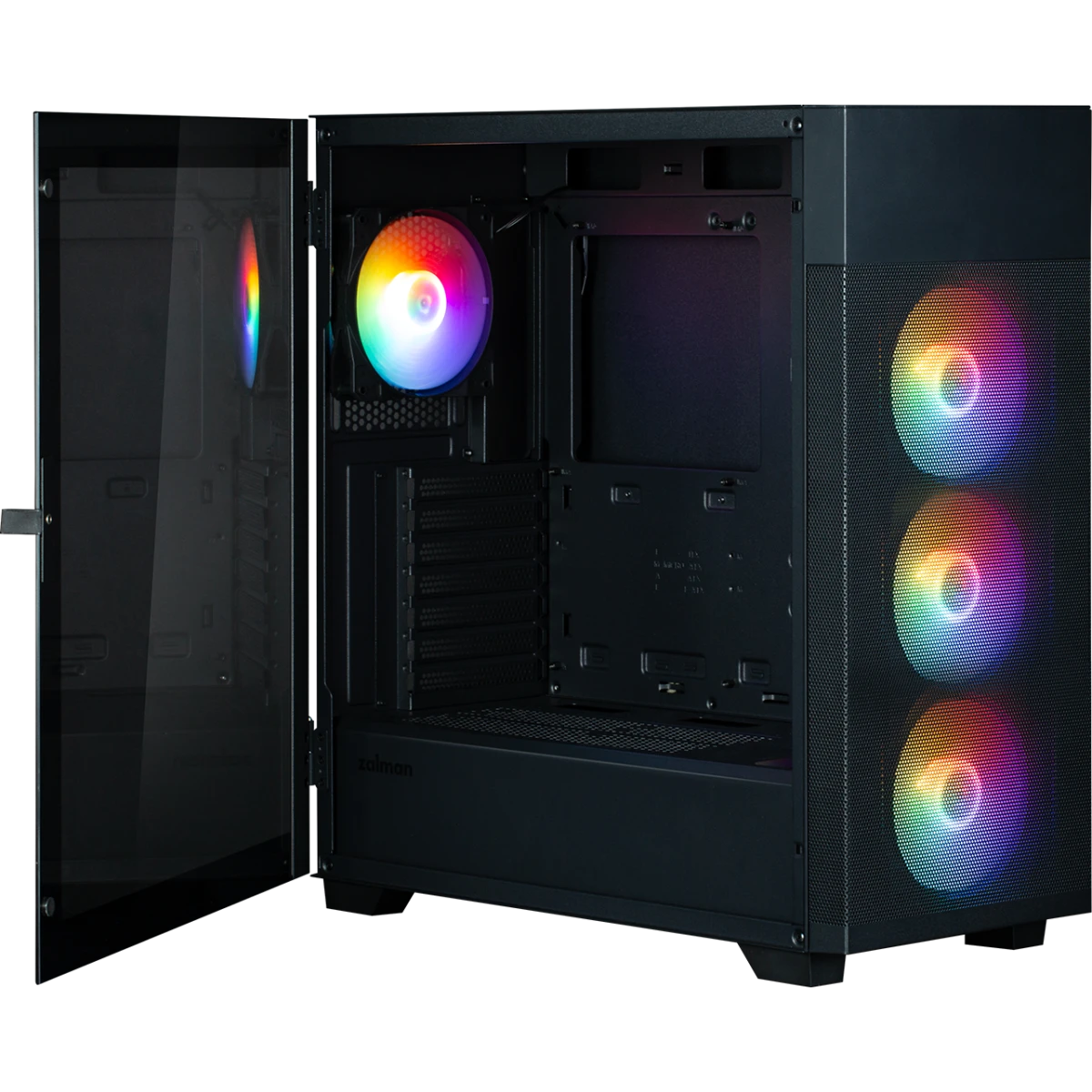 Корпус ZALMAN S5 Neo, ATX, Black, Window, 2xCombo (3.5" or 2.5"), 4x2.5", 1xUSB2.0, 1xUSB3.1, Front 3x120mm FRGB, Rear 1x120mm FRGB
