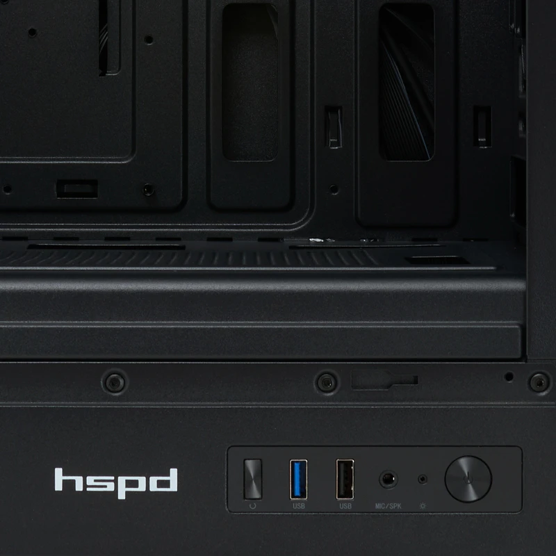 Корпус HSPD M510 (M510-TGBK), без БП, Mesh Mid Tower, Black, TG, 0.5 SPCC, no fans ATX, mITX 180/280/160mm 1x2.5", 7xPCI 1xUSB-A 3.0, 1.0 517x