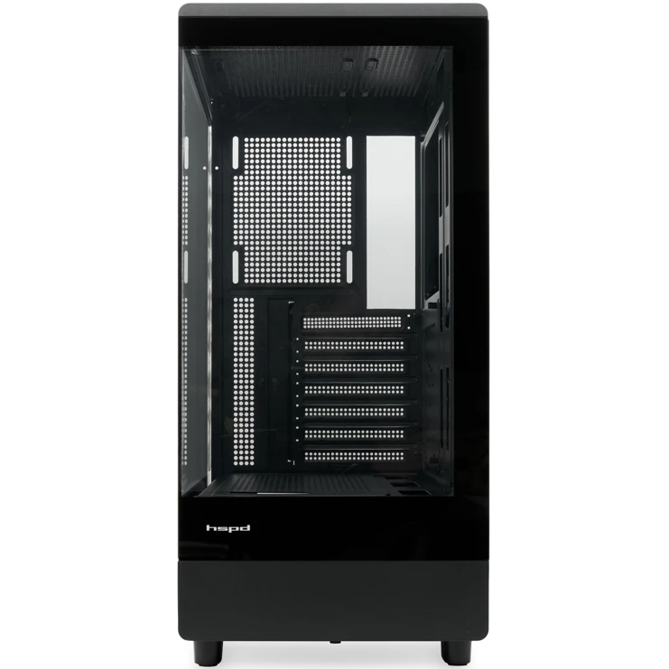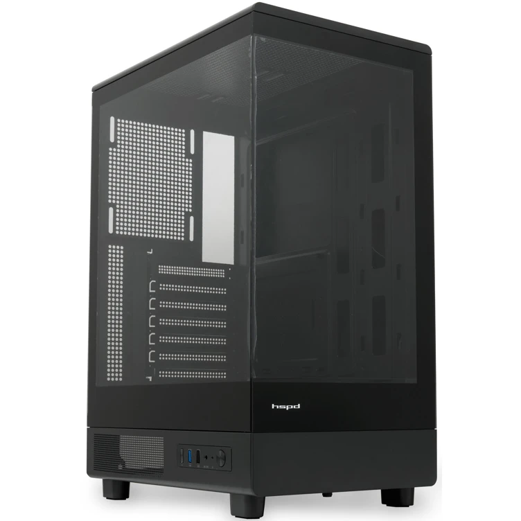 Корпус HSPD F510 (F510-TGBK), без БП, Panoramic Mid Tower, Black, TG, 0.5 SPCC, no fans ATX, mITX 180/280/160mm 1x2.5", 7xPCI 1xUSB-A 3.0, 1.0