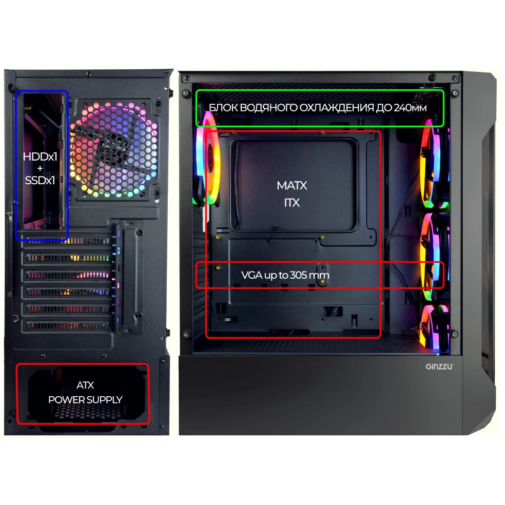 Корпус Ginzzu CL320 Fan 12см FRGB*4