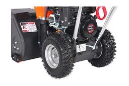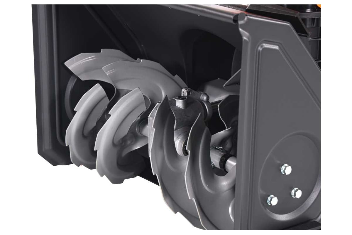 Модель подходит для обработки небольших и средних территорий, включая автомобильные стоянки с разными типами покрытия. Надежное сцепление с поверхностью обеспечивают специальные противоскользящие шины. Снегоуборщик получил обновленный премиальный дизайн корпуса с порошковым антикоррозийным покрытием. В комплект поставки входит лопатка для очистки шнека.