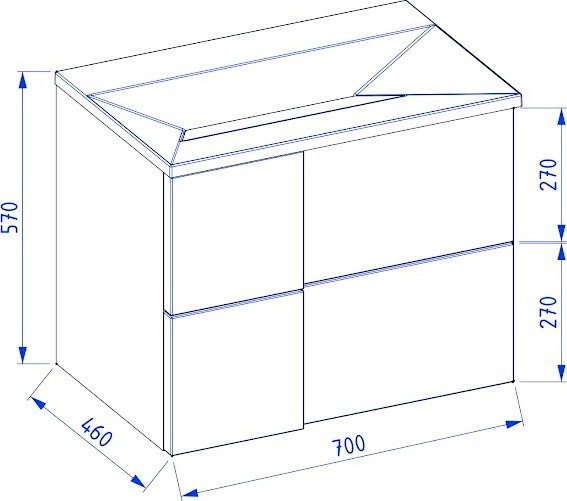• Под умывальник шириной 70 см