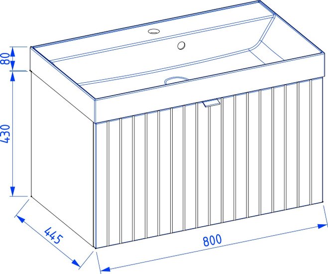 • Ширина тумбы под умывальник 80 см