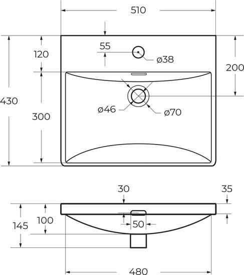 • Под умывальник шириной 50 см