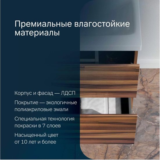 • Глубина тумбы под умывальник 40.8 см