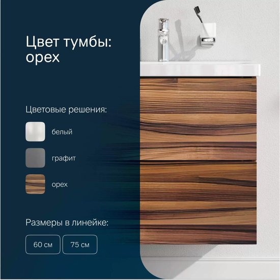 • Под умывальник шириной 60 см