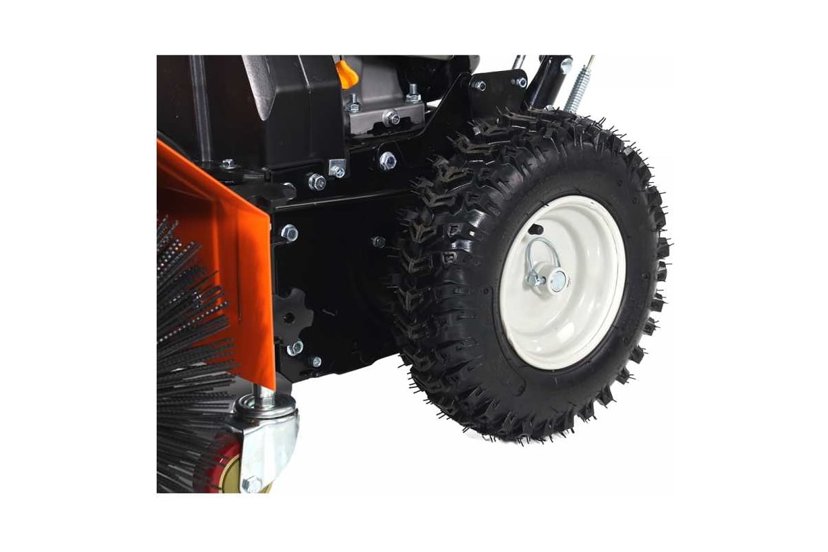 YARD FOX 600 SL может использоваться для уборки опавшей листвы на участке, а также других хозяйственных задач. Техника оснащается противоскользящими шинами, поэтому обладает высокой устойчивостью на любых поверхностях. Всесезонная щетка из качественного полимерного материала диаметром около 35 см имеет жесткую щетину и может отклоняться на 15 градусов от первоначального положения. Она подходит для круглогодичного использования: очищения придомового участка, парковки, дорожек от опавших листьев, пыли и других загрязнений, а также снежных осадков.