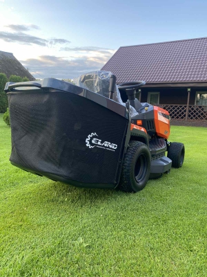 • Широкая дека и большой травосборник уменьшают количество проходов и частоту остановок.