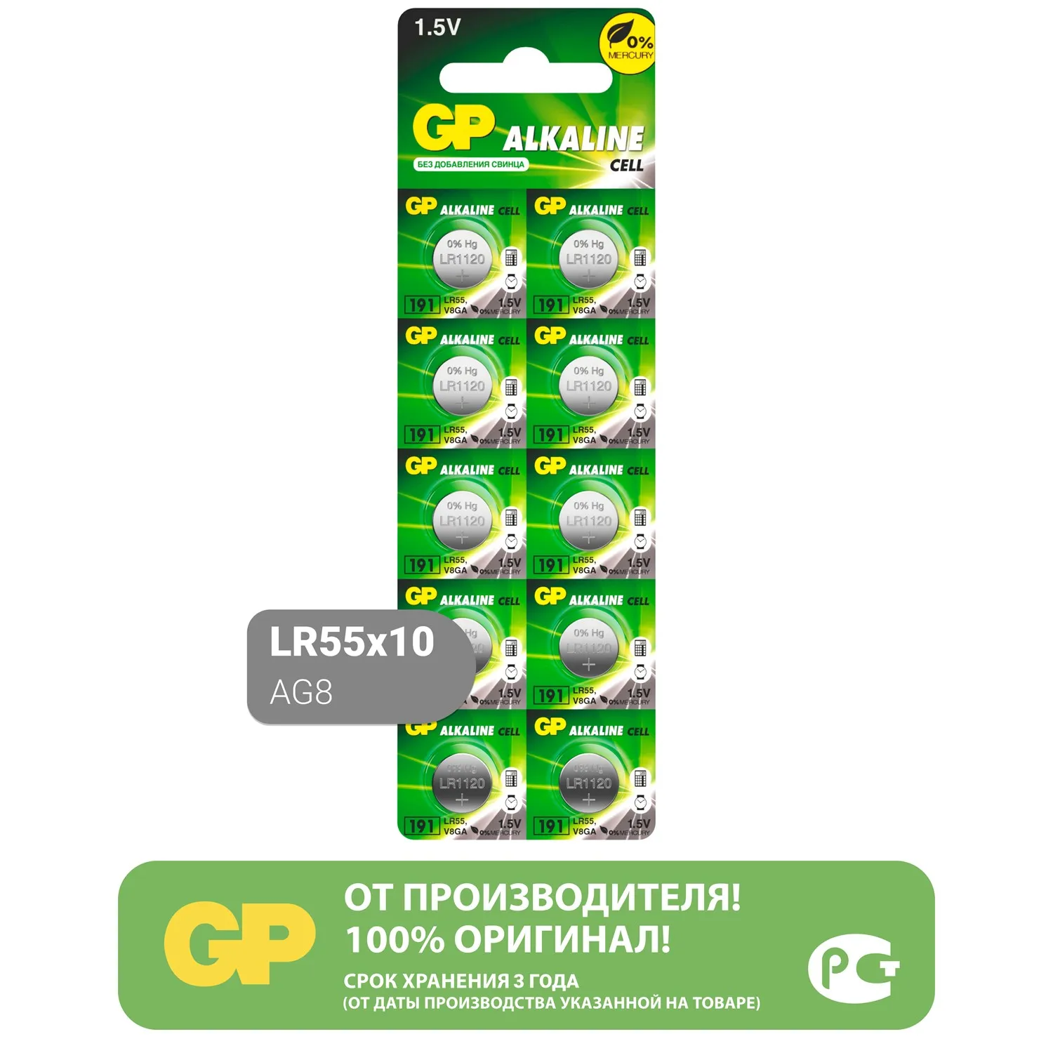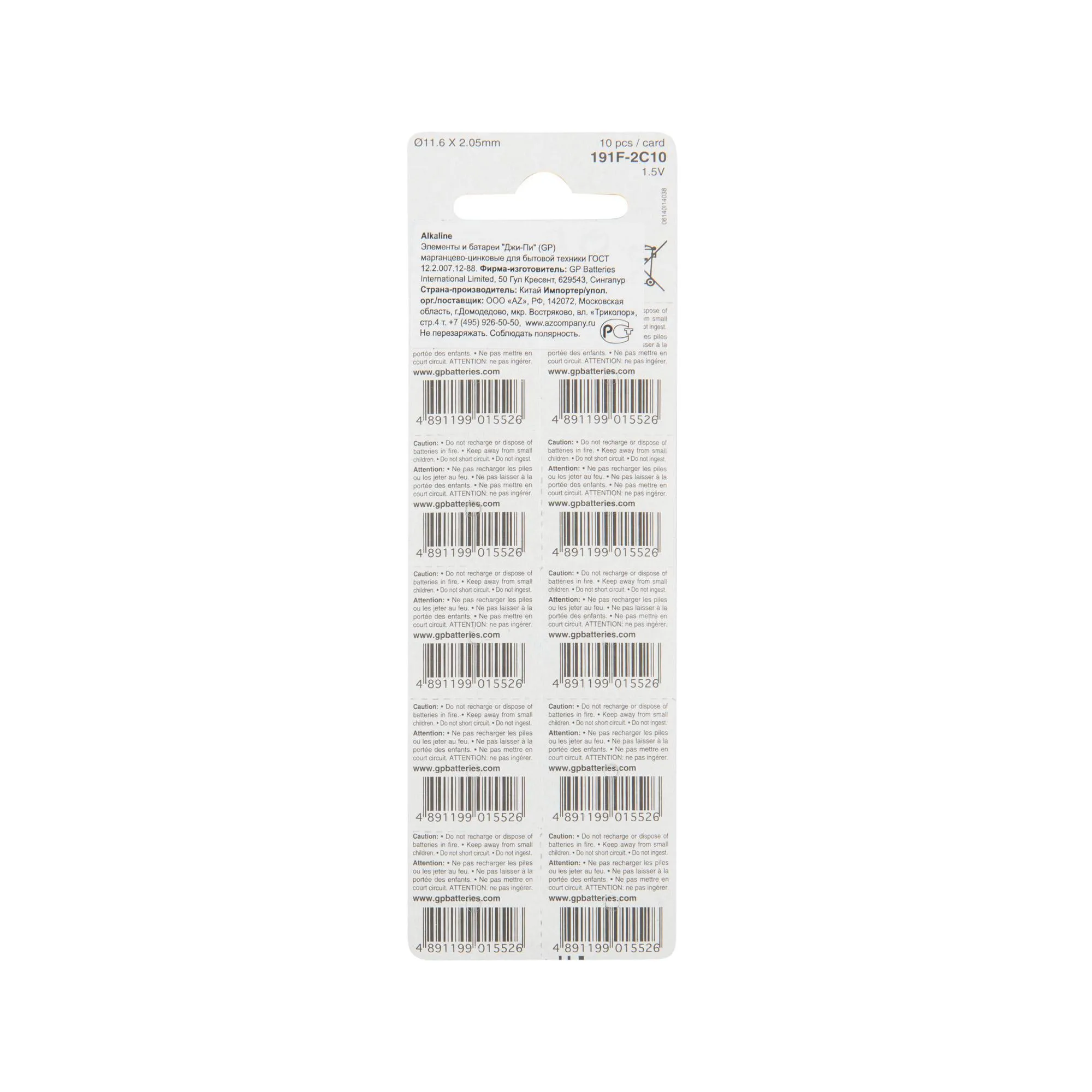 Алкалиновые пуговичные батарейки GP 191A - 10 шт., каждая в своем отрывном блистере