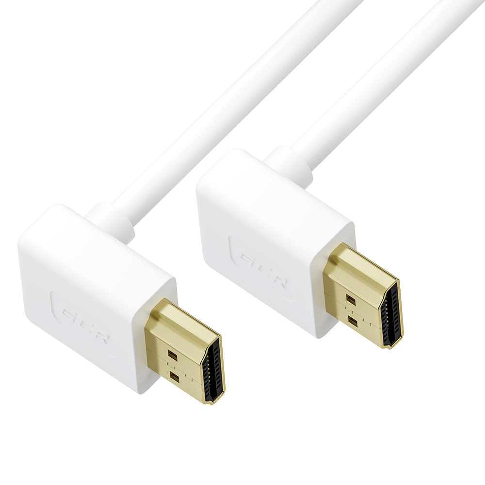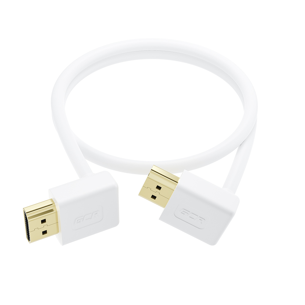 GCR Кабель SLIM 0.5m HDMI 2.0, М верхний угол / М верхний угол, белый, HDR 4:4:4, Ultra HD, 4K 60 fps 60Hz, 3D, AUDIO, 18.0 Гбит/с, GCR-57455