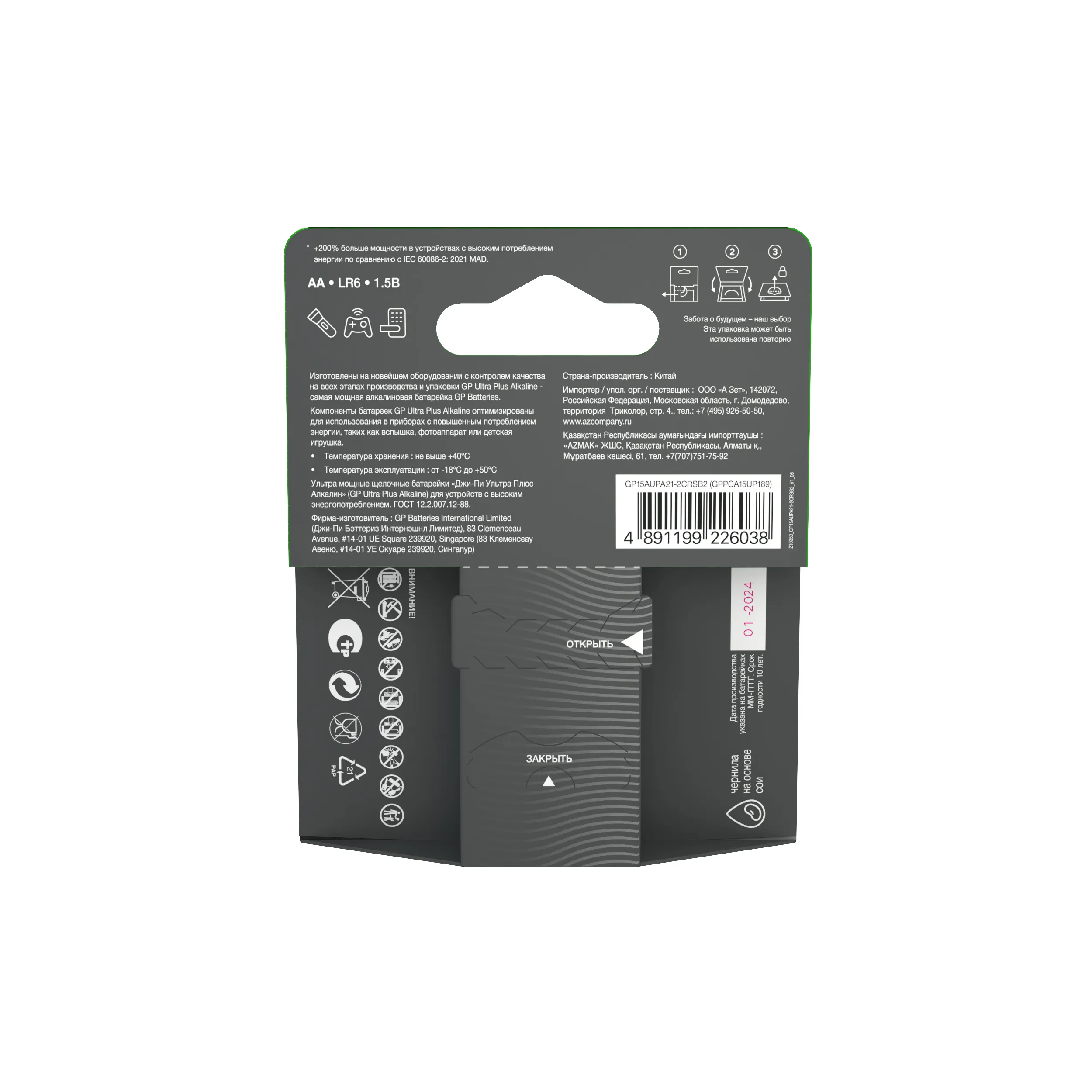 Алкалиновые батарейки c технологией G-tech GP Ultra Plus Alkaline 15A AA - 2 шт. на блистере (2 шт.)