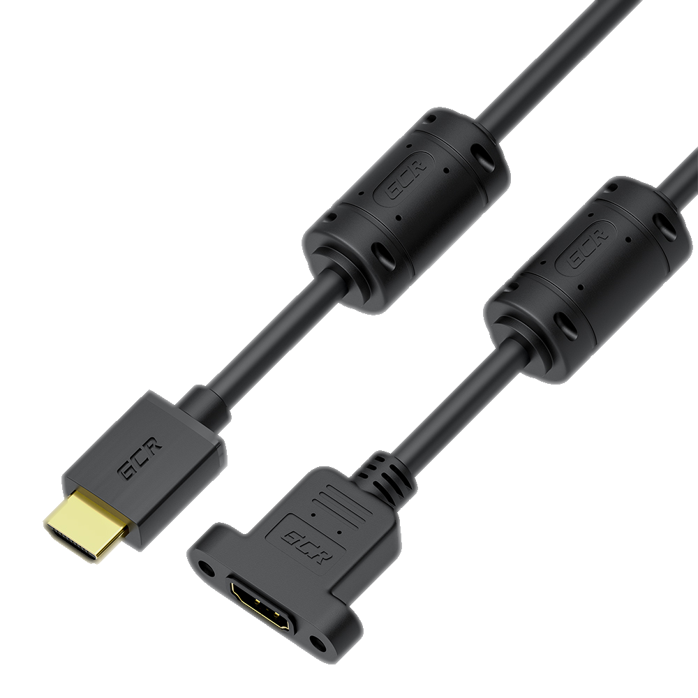GCR PRO Удлинитель PROF 10.0m HDMI-HDMI v2.0, M/F крепление под винт, фер. кольца, 4K 60Hz, HDR, 18 Гбит/c, черный, 3X экран c армированиемм, ферриты, GCR-56018