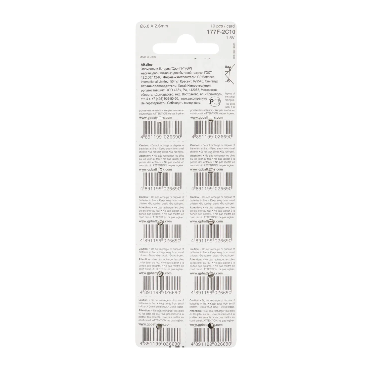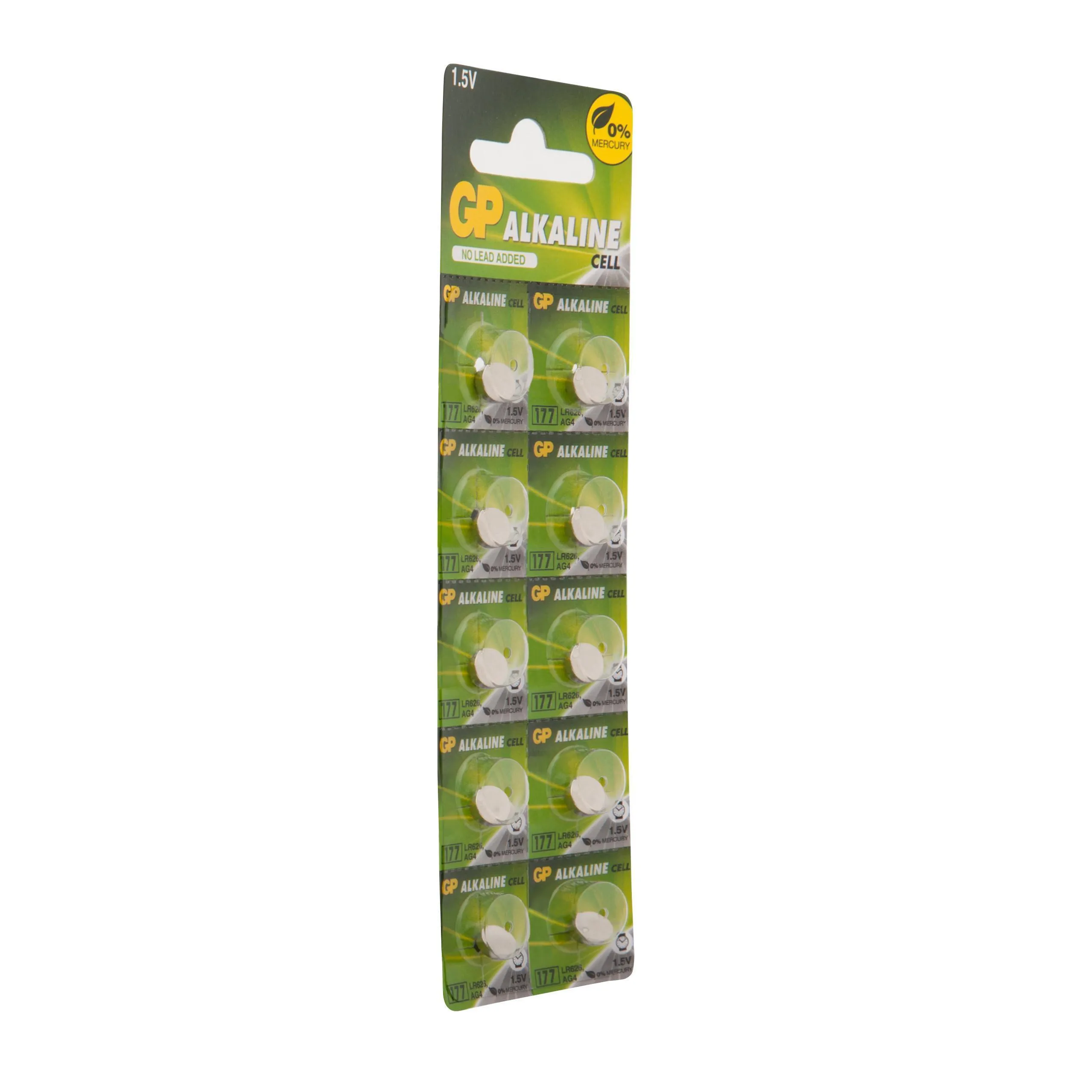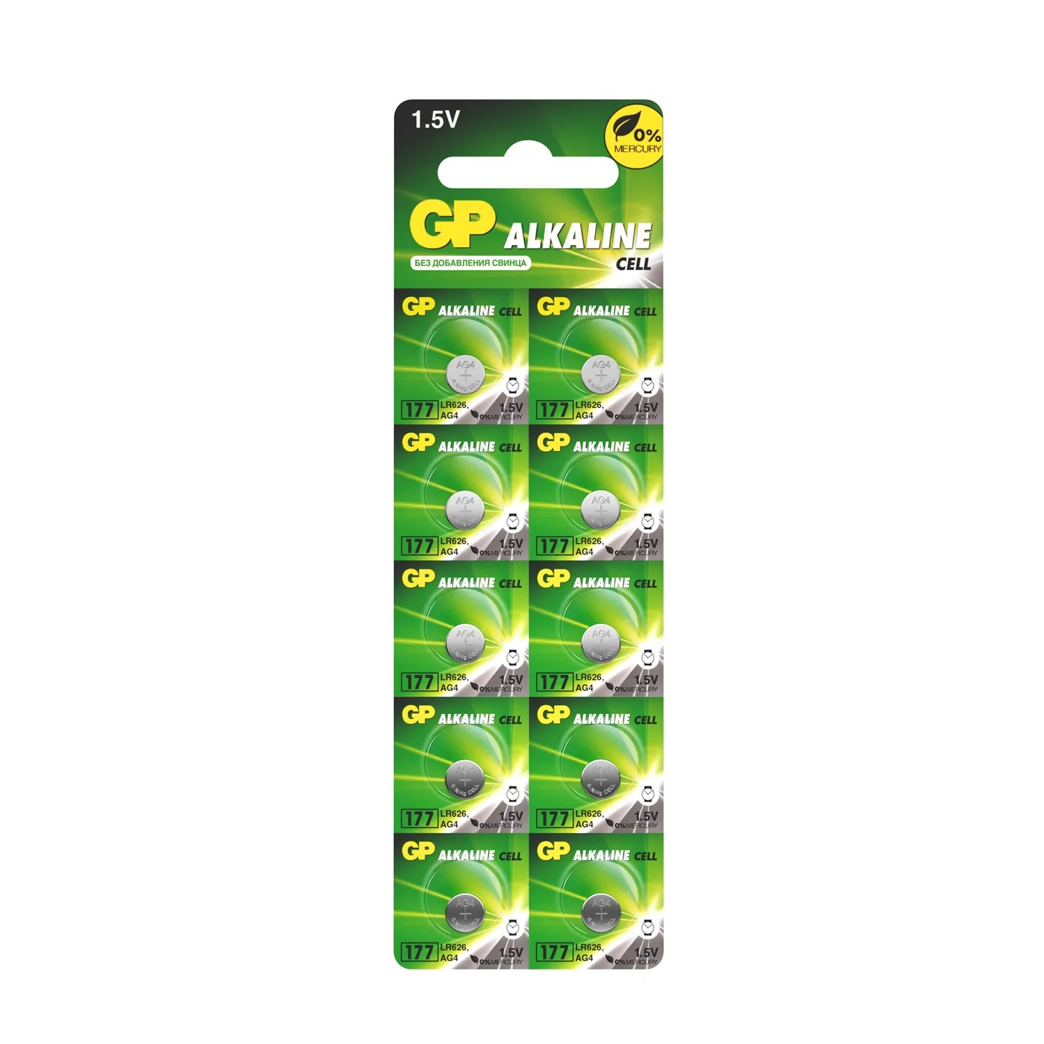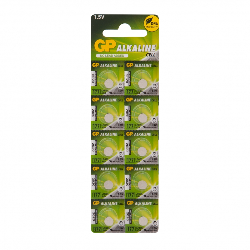 Алкалиновые пуговичные батарейки GP 177A - 10 шт., каждая в своем отрывном блистере