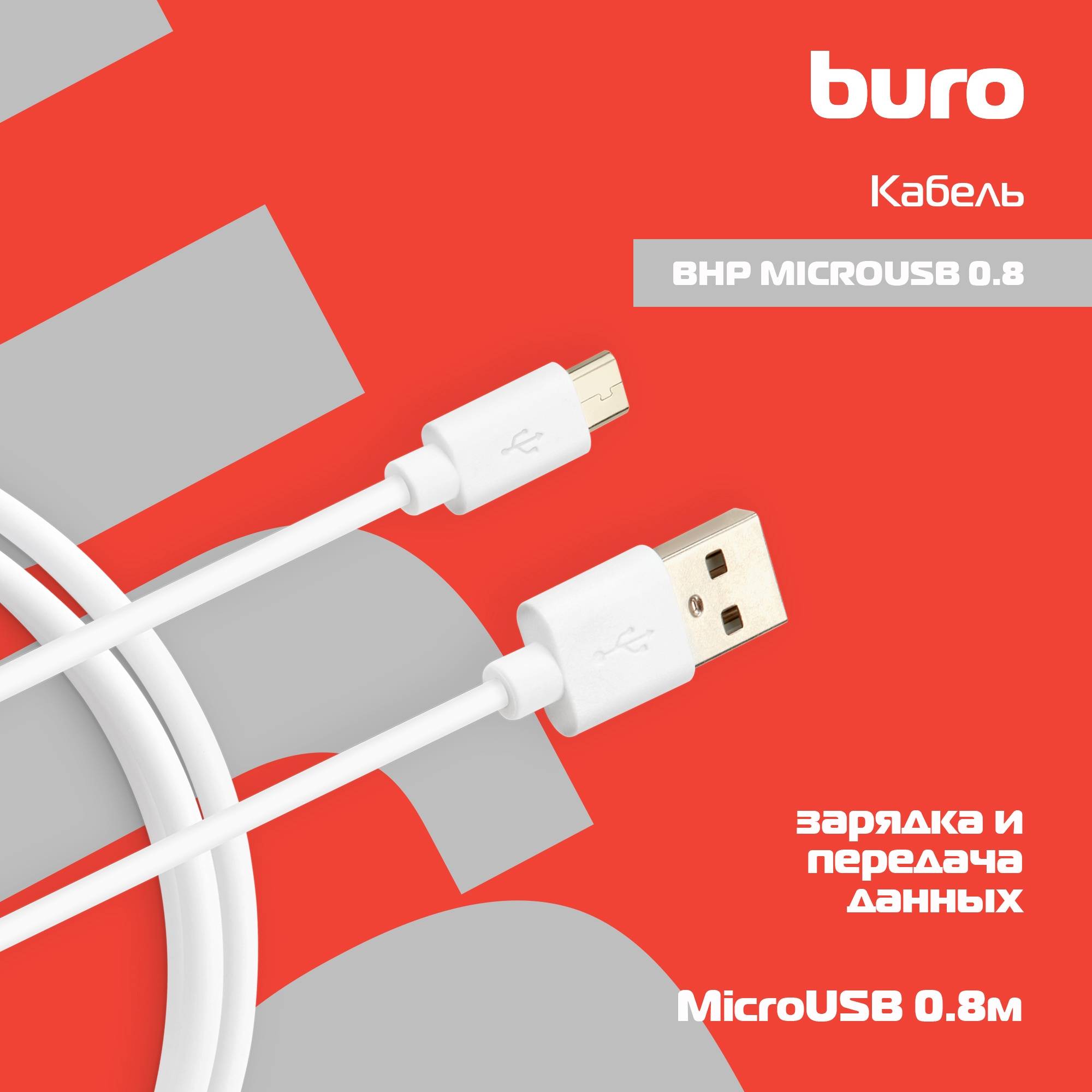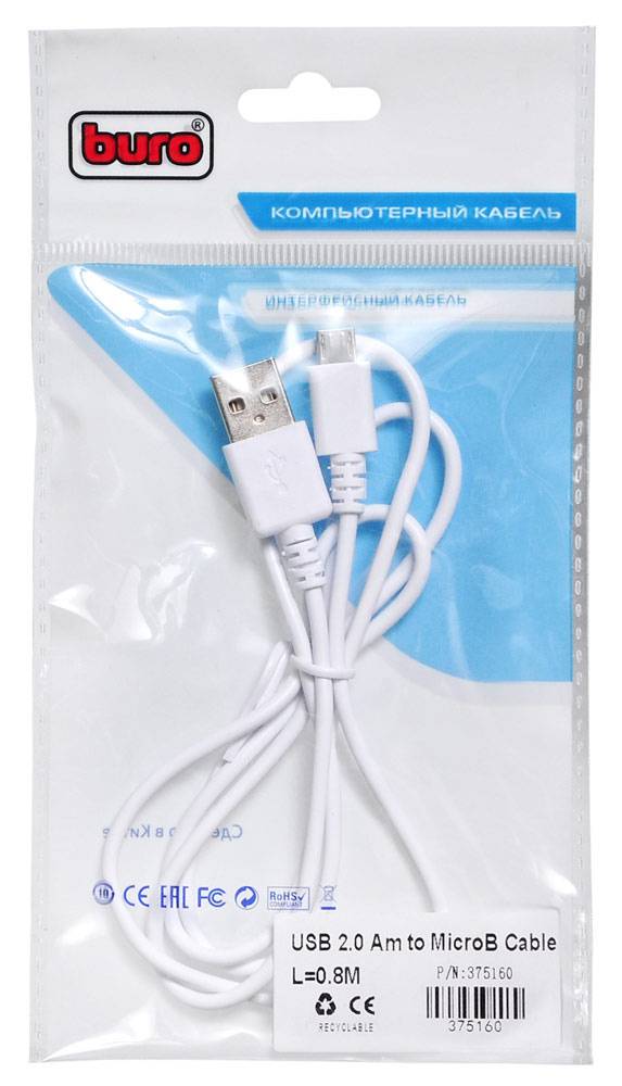 Кабель Buro USB (m)-micro USB (m) 0.8м белый (bhp microusb 0.8)