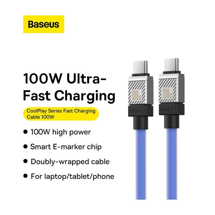 Дата кабель USB-C to USB-C 1.0m CoolPlay Fast Charging 100W blue Baseus (CAKW000203)
