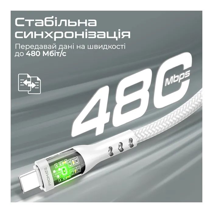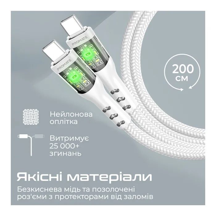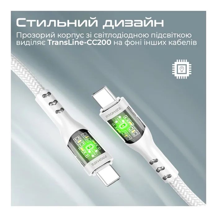 Дата кабель USB-C to USB-C 2.0m Promate (transline-cc200.white)