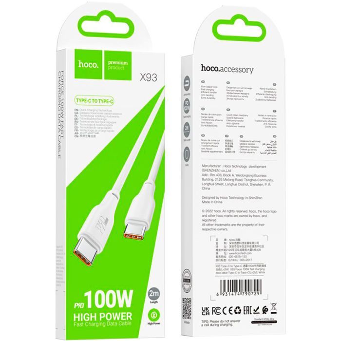 Дата кабель USB-C to USB-C 2.0m 100W TPE X93 white HOCO (6931474790729)