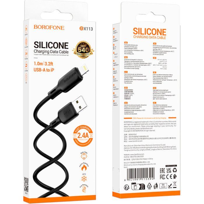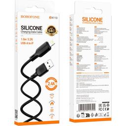 Дата кабель USB 2.0 AM to Lightning 1.0m Lenny silicone BX113 black BOROFONE (6941991115394)