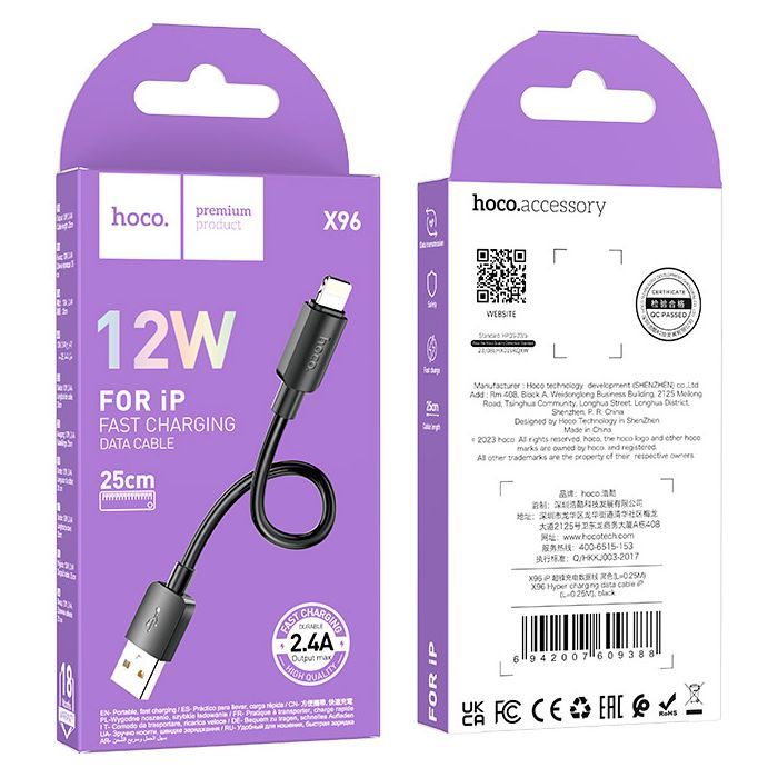 - Модель USB 2.0 AM to Lightning 0.25m Hyper X96 black