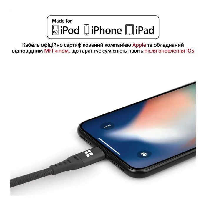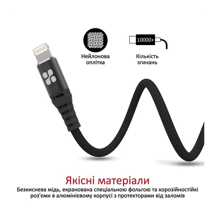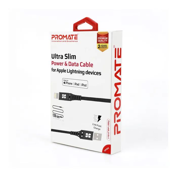 Дата кабель USB 2.0 AM to Lightning 1.2m black Promate (nervelink-i.black)