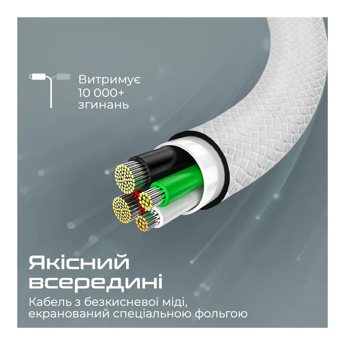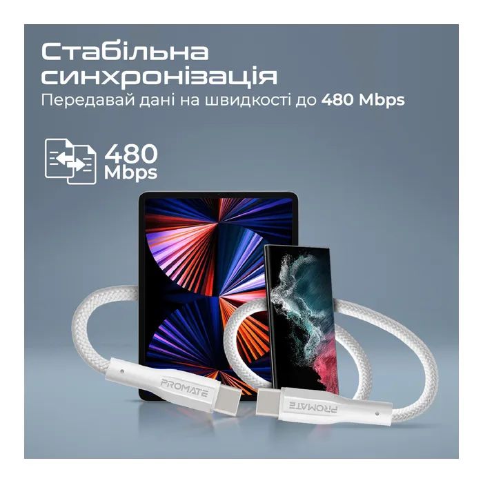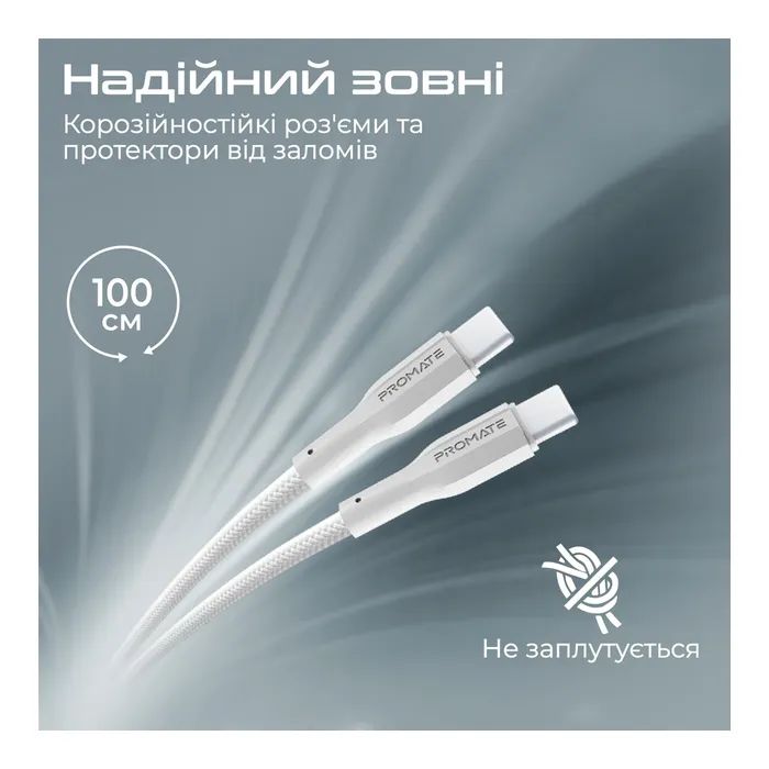 Дата кабель USB-C to USB-C 1.0m Promate (xcord-cc.white)