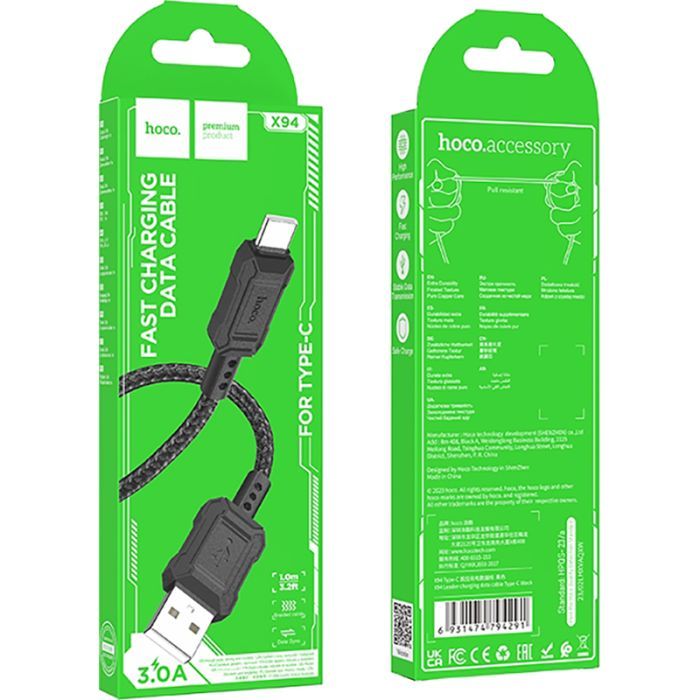 - Модель USB 2.0 AM to USB-C 1.0m Leader charging X94 black