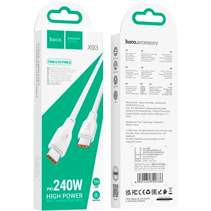Дата кабель USB-C to USB-C 1.0m 240W TPE X93 white HOCO (6931474790736)