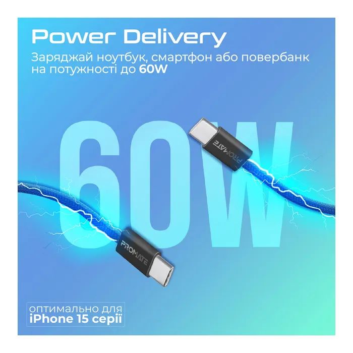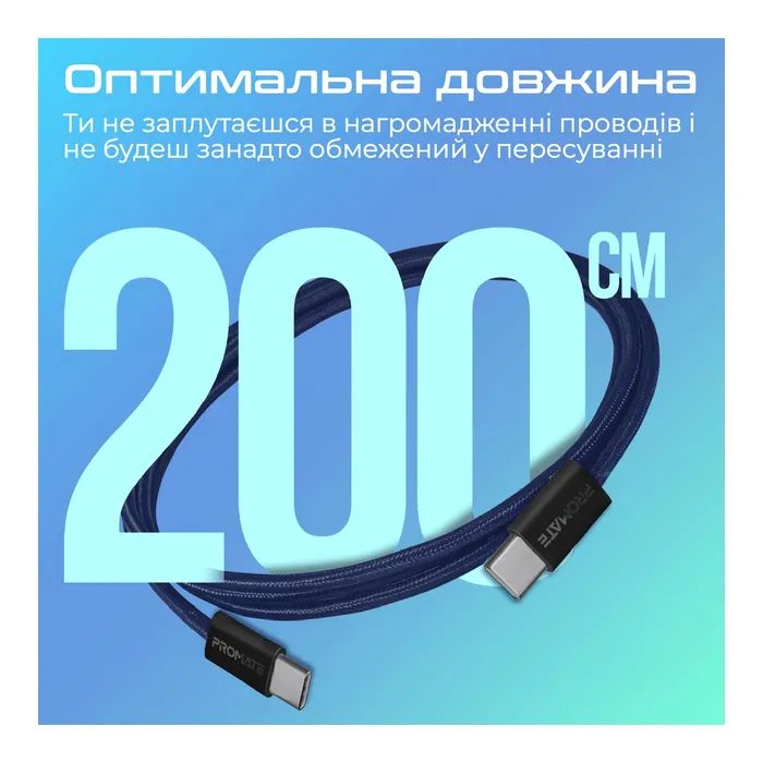 Дата кабель USB-C to USB-C 2.0m Promate (ecoline-cc200.navy)