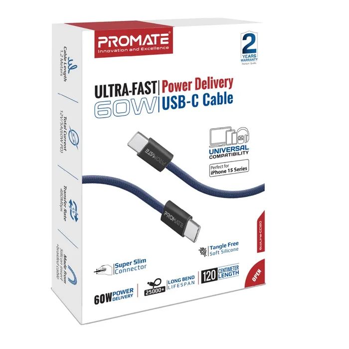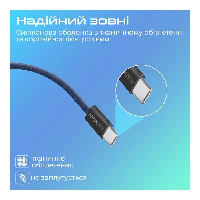 Дата кабель USB-C to USB-C 1.2m Promate (ecoline-cc120.navy)