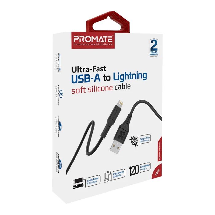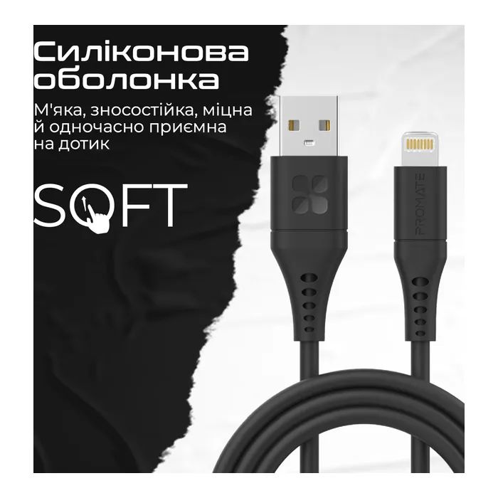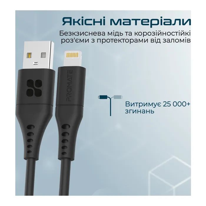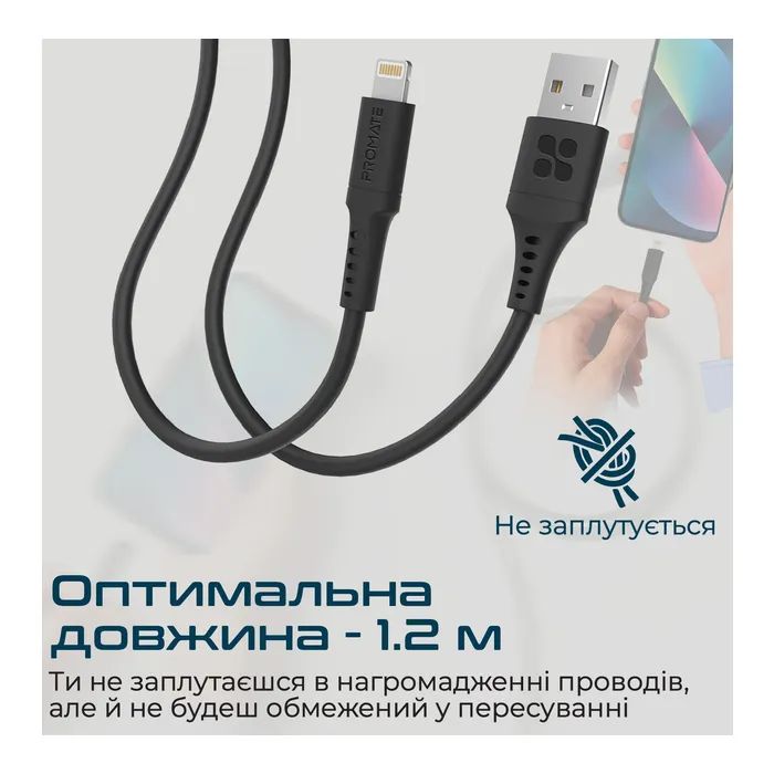 Дата кабель USB 2.0 AM to Lightning 1.2m 2.4A black Promate (powerlink-ai120.black)