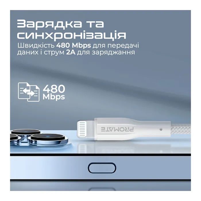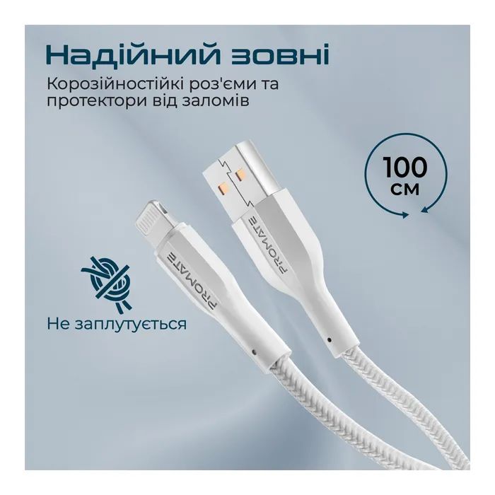 - Модель USB 2.0 AM to Lightning 1.0m 2A xCord-Ai white