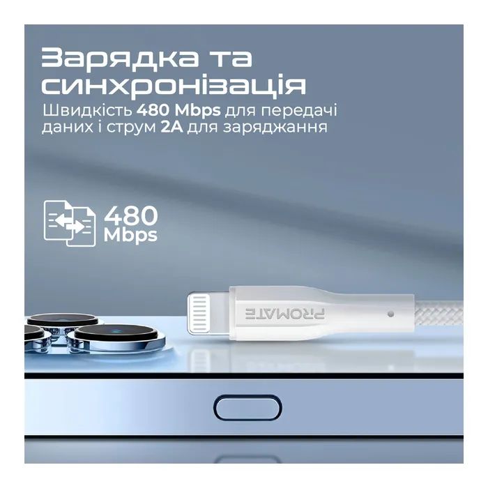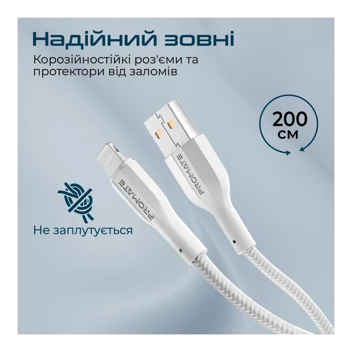- Модель USB 2.0 AM to Lightning 2.0m 2A xCord-Ai200 white