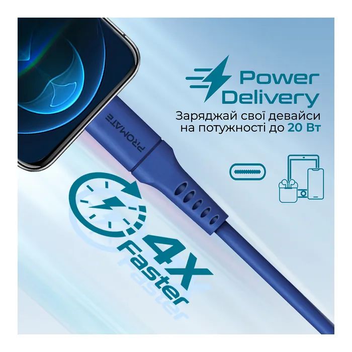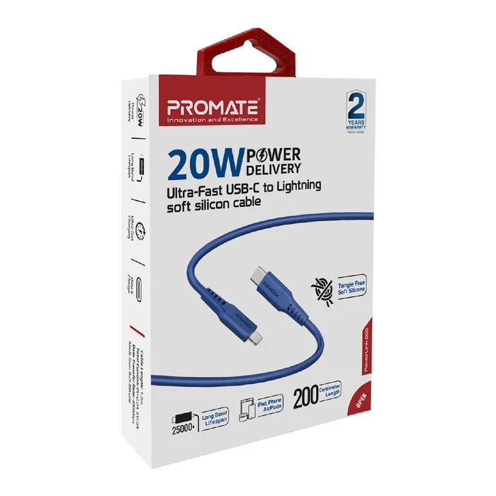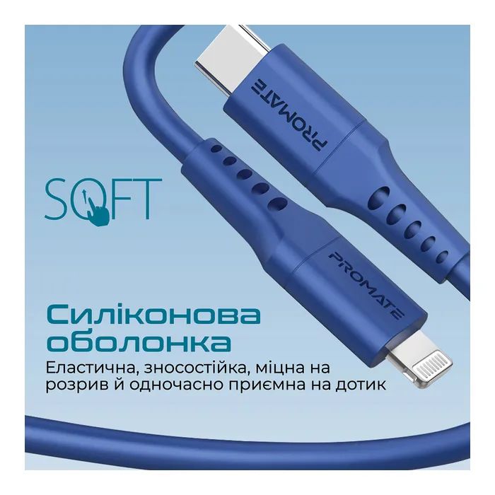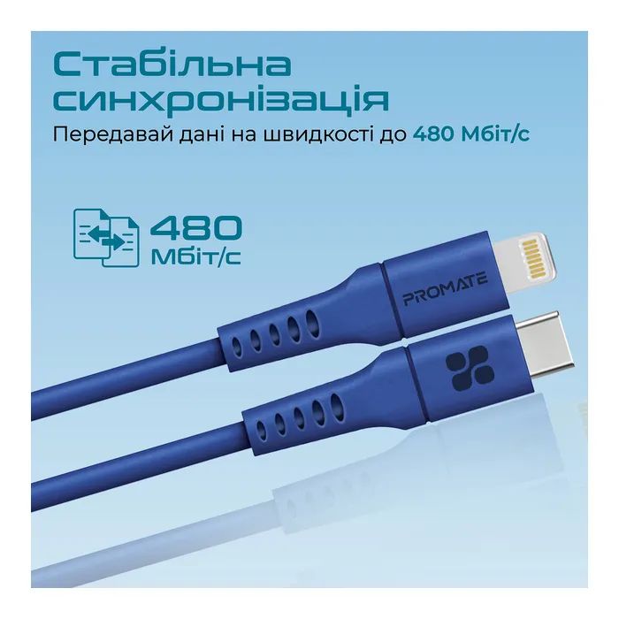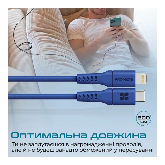 Дата кабель USB-C to Lightning 2.0m 3A PowerLink-200 blue Promate (powerlink-200.blue)