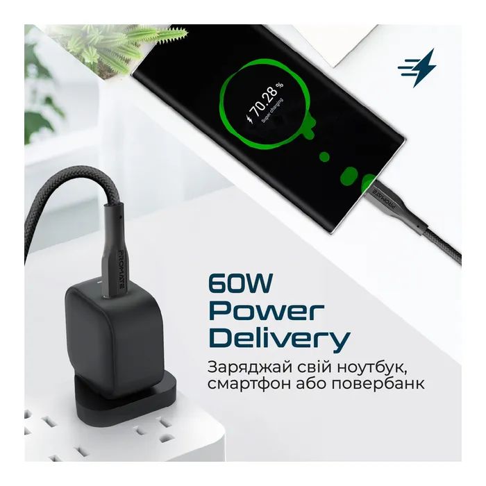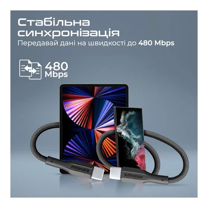 Дата кабель USB 2.0 AM to USB-C 2.0m 2A xCord-AC200 black Promate (xcord-ac200.black)