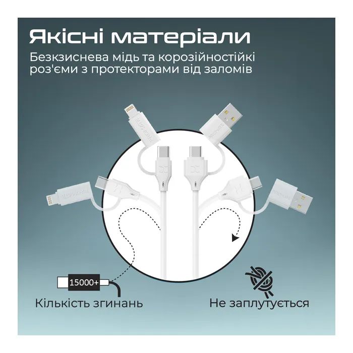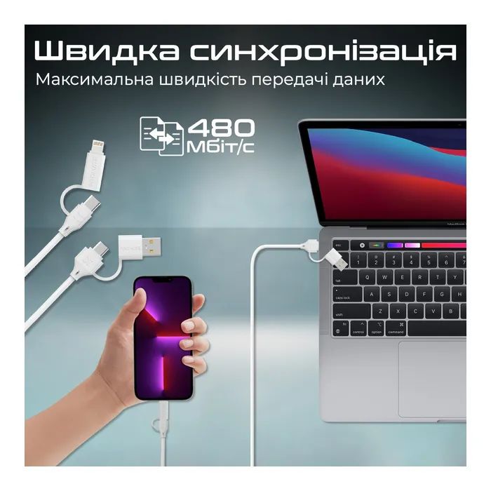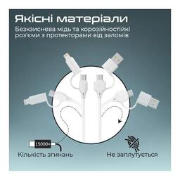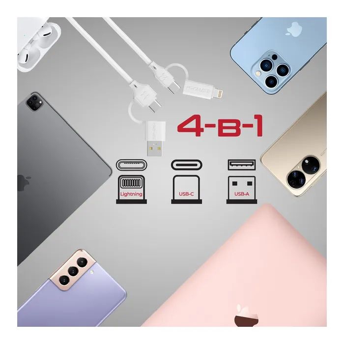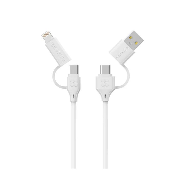Дата кабель USB-C + USB 2.0 AM to USB-C + Lightning 1.2m 60W quadcord-pd60 white Promate (quadcord-pd60.white)