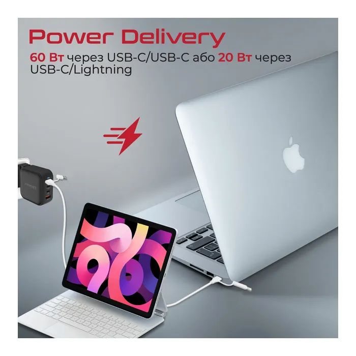 • Модель USB-C + USB 2.0 AM to USB-C + Lightning 1.2m 60W q
