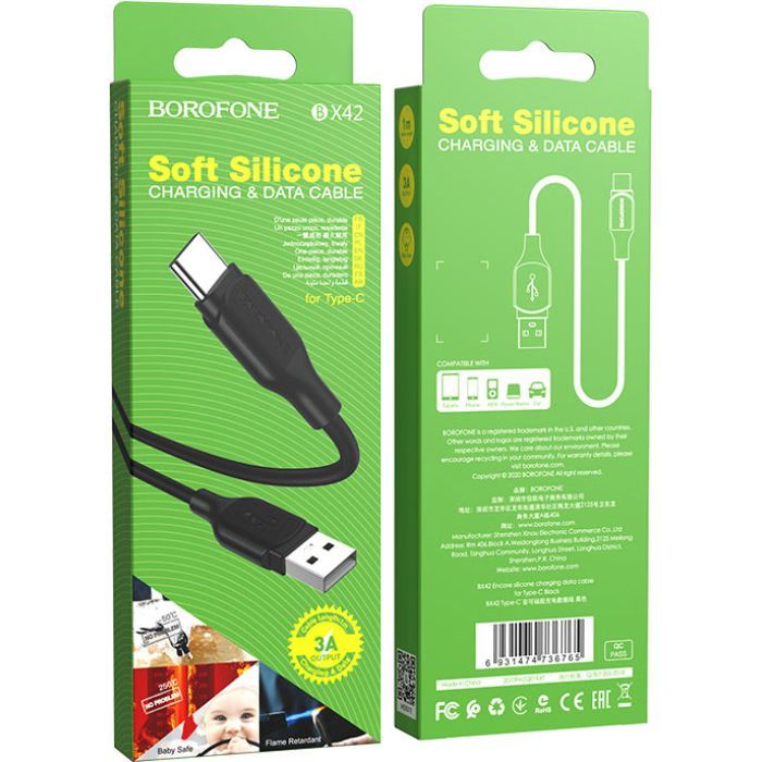- Модель USB 2.0 AM to USB-C 1.0m 3A silicone BX42 black