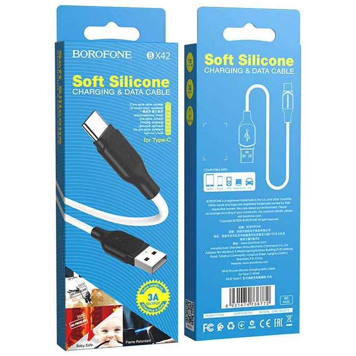 - Модель USB 2.0 AM to USB-C 1.0m 3A silicone BX42 white