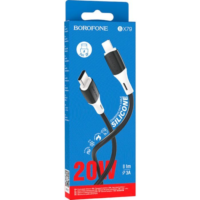 - Модель USB-C to Lightning 1.0m 3A 20W silicone BX79 black