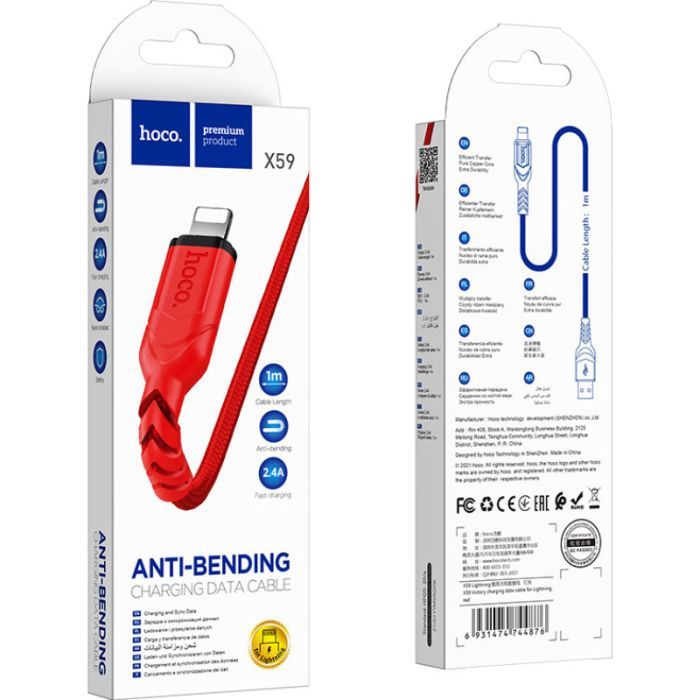 - Модель USB 2.0 AM to Lightning 1.0m 2.4A nylon X59 red