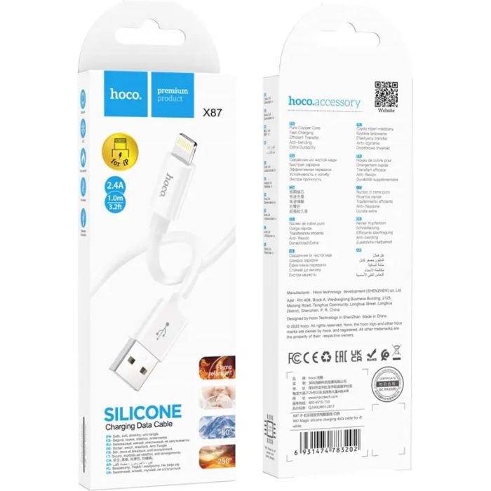 - Модель USB 2.0 AM to Lightning 1.0m Magic silicone X87 wh