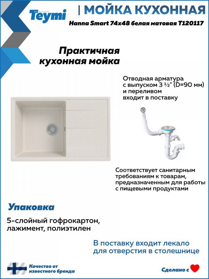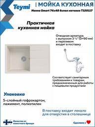Кухонная мойка Teymi Hanna Smart T120117 74x48 белый матовый