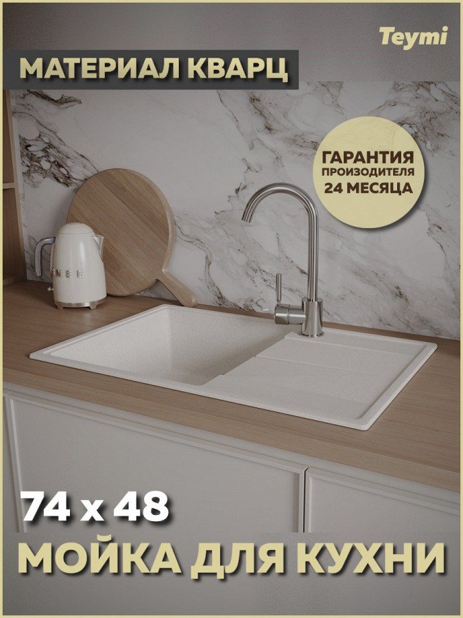 кухонная мойка teymi hanna smart t120117 74x48 белый матовый