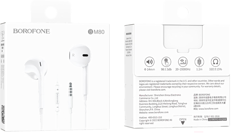 Наушники-гарнитура Borofone BM80 (1.2м, белый)