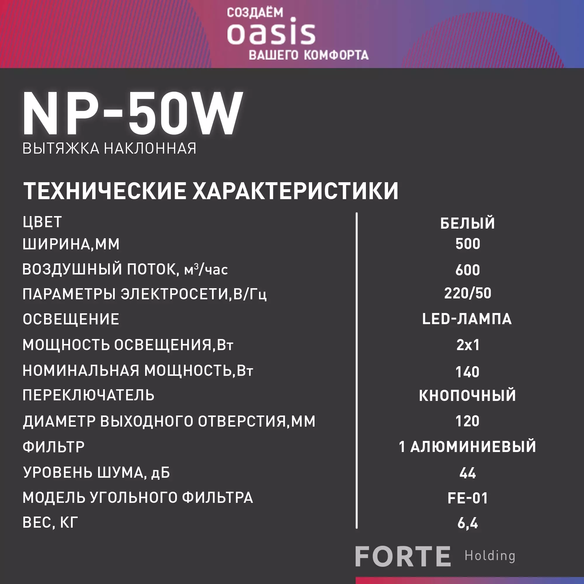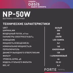 Каминная вытяжка Oasis NP-50W белый (np-50w (fr))